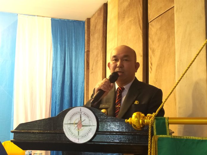 “Selamat kepada seluruh civitas akademika Universitas Katolik Santo Agustinus Hippo yang pada hari ini bisa melaksanakan wisuda pertama program keguruan dan ilmu pendidikan,” ucap Samuel.
