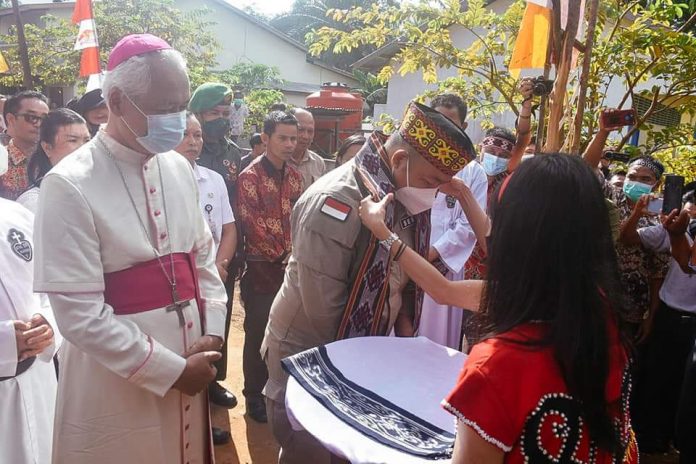 KETAPANG- Bupati Ketapang Martin Rantan yang diwakili Sekretaris Daerah Kabupaten Ketapang Alexander Wilyo menghadiri kegiatan peresmiaan Paroki Santo Petrus dan Paulus Sungai Daka, di Desa Sungai Daka, Kecamatan Sungai Laur, Kabupaten Ketapang, Rabu (29/06/2022).