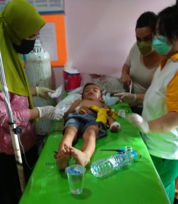 Korban lainnya Alfariel Sulistyo Putra (5) mengalami retak pada bagian tengkorak kepala belakang serta luka lecet pada kening dan tangan kiri yang langsung di rujuk ke RS di Kota Pontianak.