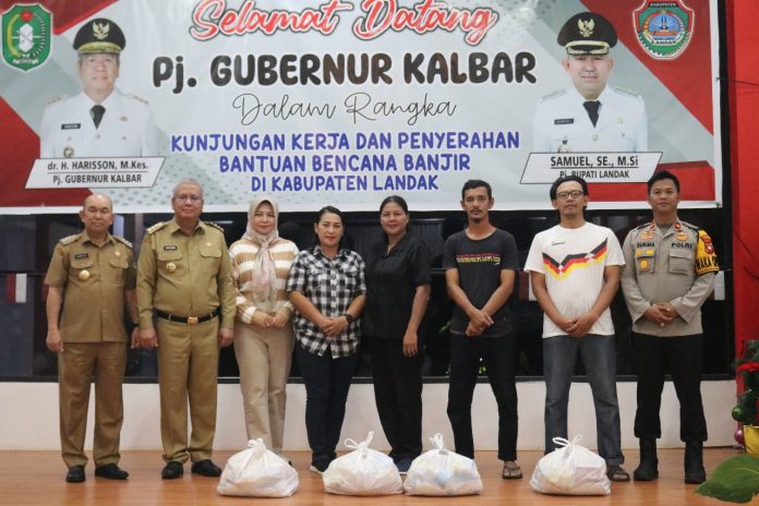 LANDAK – Pj. Gubernur Kalimantan Barat Harisson meninjau langsung kondisi bencana banjir yang merendam sejumlah daerah di Kabupaten Landak, Selasa (09/01/2024).