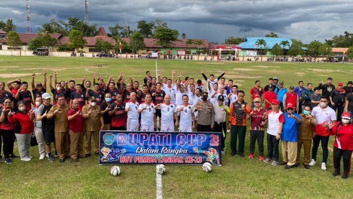 LANDAK – Dalam rangka memeriahkan Hari Ulang Tahun Pemerintah Kabupaten Landak ke 23 Tahun 2022, Pemerintah Kabupaten Landak menggelar turnamen sepak bola Bupati Cup yang digelar di lapangan sepak bola Bardan Ngabang, Selasa (20/09/2022).