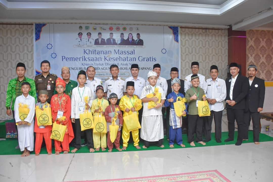 KETAPANG – Wakil Bupati Ketapang Farhan menghadiri khitanan massal dan pemeriksaan kesehatan gratis yang diselenggarakan oleh pengurus Masjid Agung Al-Ikhlas Ketapang di halaman Masjid Rabu, (27/12/2023).