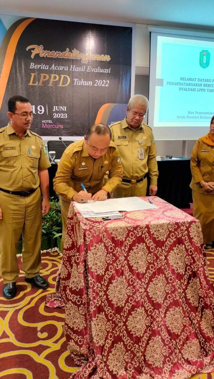 PONTIANAK – Bupati Ketapang Martin Rantan yang diwakili Sekretaris Daerah Kabupaten Ketapang Alexander Wilyo melakukan penandatanganan berita acara hasil Evaluasi Penyelenggaraan Pemerintah Daerah (EPPD) Kabupaten/Kota se Kalimantan Barat Tahun 2023, Senin (19/06).