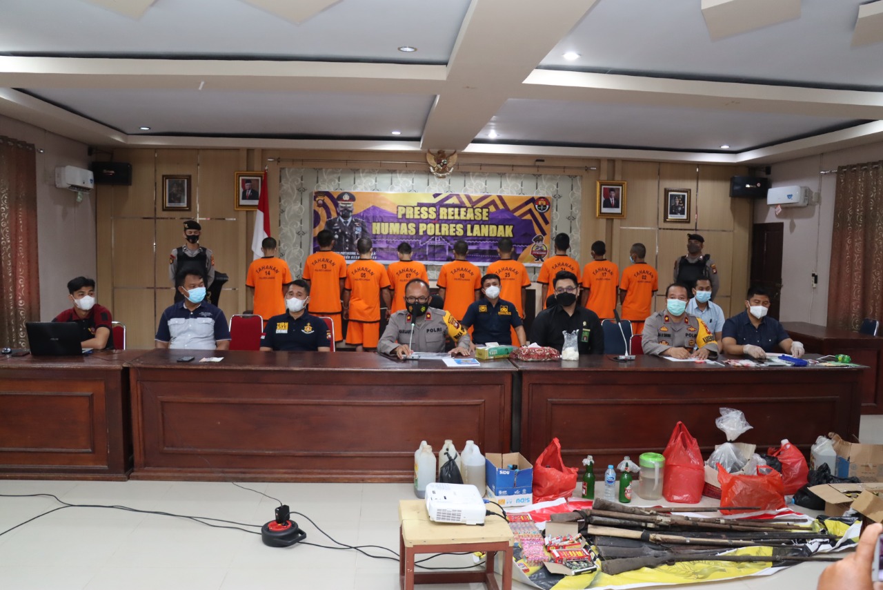 LANDAK- Jajaran Polres Landak mengamankan 15 orang tersangka aksi tindak kejahatan sepanjang digelarnya Operasi Pekat Kapuas II Tahun 2021 yang dilaksanakan beberapa waktu lalu.