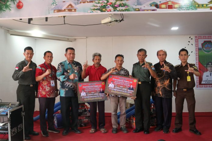 “Pada kesempatan hari ini Pemerintah Kabupaten Landak melalui Dinas Pertanian, Perikanan dan Ketahanan Pangan akan menyerahkan bantuan Alsintan pra panen (Pompa Air) kepada para kelompok tani,” ucap Gutmen.