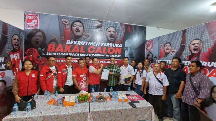 Kedatangan Andeas Lani ke DPD PSI Landak didampingi sejumlah pendukung dan disambut langsung Ketua DPD PSI serta panitia penjaringan penerimaan berkas bacalon Bupati dan Wakil Bupati Landak.