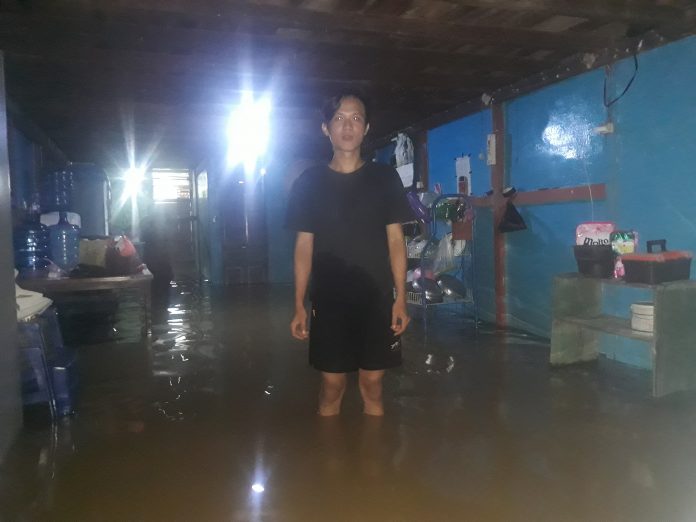 “Warga yang rumahnya mulai terendam melakukan evakuasi barang berharga mereka ke tingat dua. Rata-rata rumah di sini tingkat dua bang. Jadi walau air masuk dalam rumah belum ada warga yang mau mengungsi,” pungkasnya (Tim Liputan).