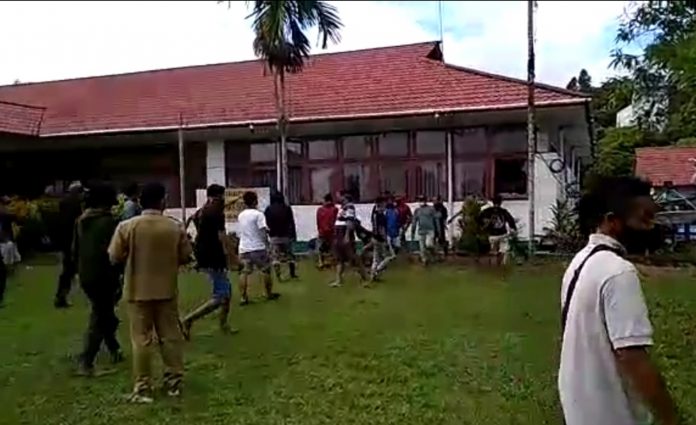 Akibat aksi yang dilakukan sejumlah masa tersebut sejumlah kaca di Kantor Camat Nanga Mahap pecah.