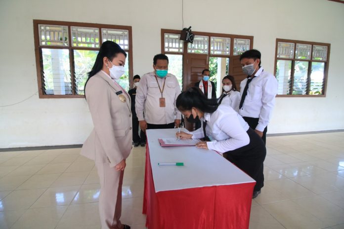 LANDAK – Bupati Landak Karolin Margret Natasa melantik Badan Permusyawaratan Desa (BPD) pada Desa Re’es yang dihadiri Wakil Ketua DPRD Kabupaten Landak, Kepala Dinas Pemberdayaan Masyarakat dan Pemerintahan Desa (PMPD) Kabupaten Landak, Forkopimcam Menjalin dan Kepala Desa Se-Kecamatan Menjalin yang bertempat di gedung serbaguna Pastoran Menjalin, Gereja Santo Petrus dan Santo Paulus Menjalin, selasa (29/03/2022).
