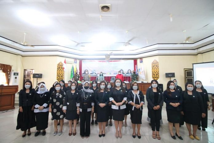 LANDAK – Bupati Landak Karolin Margret Natasa menghadiri pelantikan dan pengukuhan Dewan Pimpinan Cabang (DPC) Kaukus Perempuan Politik Indonesia (KKPI) Kabupaten Landak yang dilantik langsung Ketua Dewan Pimpinan Daerah (DPD) Kaukus Perempuan Politik Indonesia (KKPI) Kalimantan Barat Angeline Fremalco di aula Kantor DPRD Kabupaten Landak, kamis (25/11/2021).
