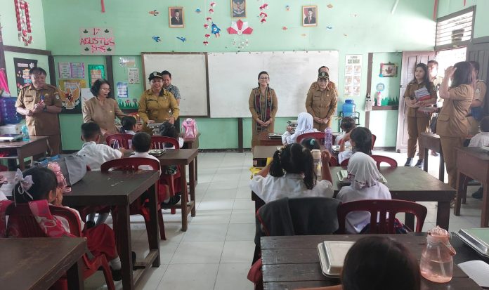 LANDAK – Bupati Landak Karolin Margret Natasa meninjau langsung pelaksanaan program Makan Bergizi Gratis (MBG) di Sekolah Dasar Negeri (SDN) 02 Ngabang, Senin (11/8/2025).
