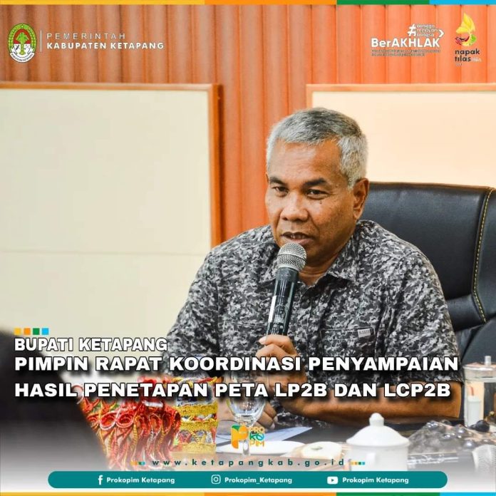 KETAPANG – Bupati Ketapang, Martin Rantan, memimpin rapat koordinasi penyampaian hasil penetapan peta dan Luasan Lahan Pertanian Pangan Berkelanjutan (LP2B) dan Lahan Cadangan Pertanian Pangan Berkelanjutan (LCP2B) di Kabupaten Ketapang, Kamis (25/01/2024).