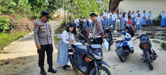 LANDAK – Polsek Mandor melakukan penertiban terhadap sejumlah kendaraan para pelajar di SMK N 1 Mandor yang menggunakan knalpot borong atau racing yang dilaksanakan pada Senin (13/02/2023).