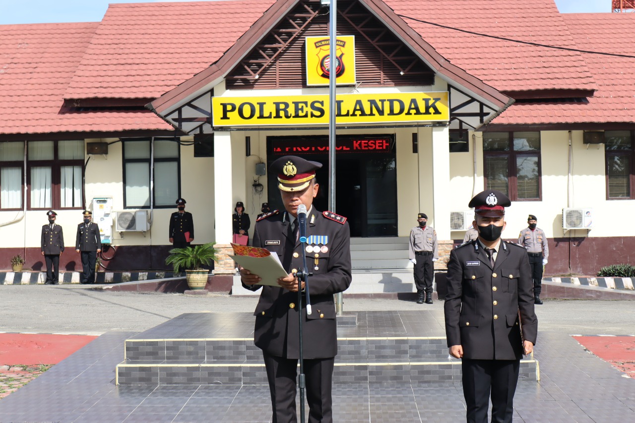 Upacara dipimpin langsung oleh Wakapolres Landak AKBP Sriharjanto dihadiri sejumlah Pejabat Utama Polres Landak.