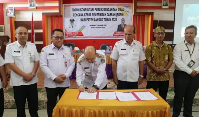 LANDAK – Pj. Bupati Landak Samuel membuka acara Forum Konsultasi Publik Rancangan Awal Rencana Kerja Pemerintah Daerah (RKPD) Kabupaten Landak Tahun 2025, Rabu (31/01/2024).