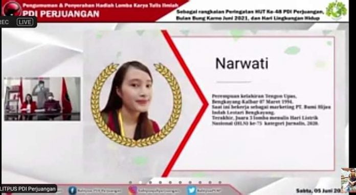 BENGKAYANG- Seorang jurnalis perempuan Bengkayang, Narwati berhasil memenangkan lomba karya tulis ilmiah (LKTI) di tingkat nasional. Pengumuman pemenang dilakukan Sabtu sore (5/6/2021) via virtual.