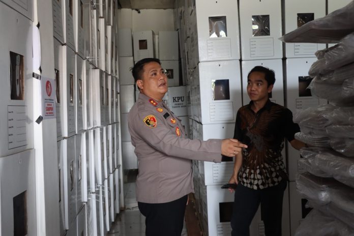 Dalam pengecekan tersebut, Kapolres meninjau langsung kondisi gudang logistik. Ia juga melihat secara langsung berbagai macam logistik Pemilu 2024 yang sudah mulai masuk ke gudang.