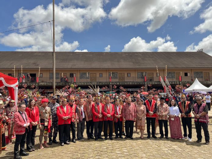 LANDAK – Bupati Landak periode 2017-2022 Karolin Margret Natasa menghadiri pembukaan Naik Dango ke 38 tahun 2023 yang diikuti 18 kontingen, bertempat di rumah radakng aya’, Kabupaten Landak, kamis (27/04/2023).