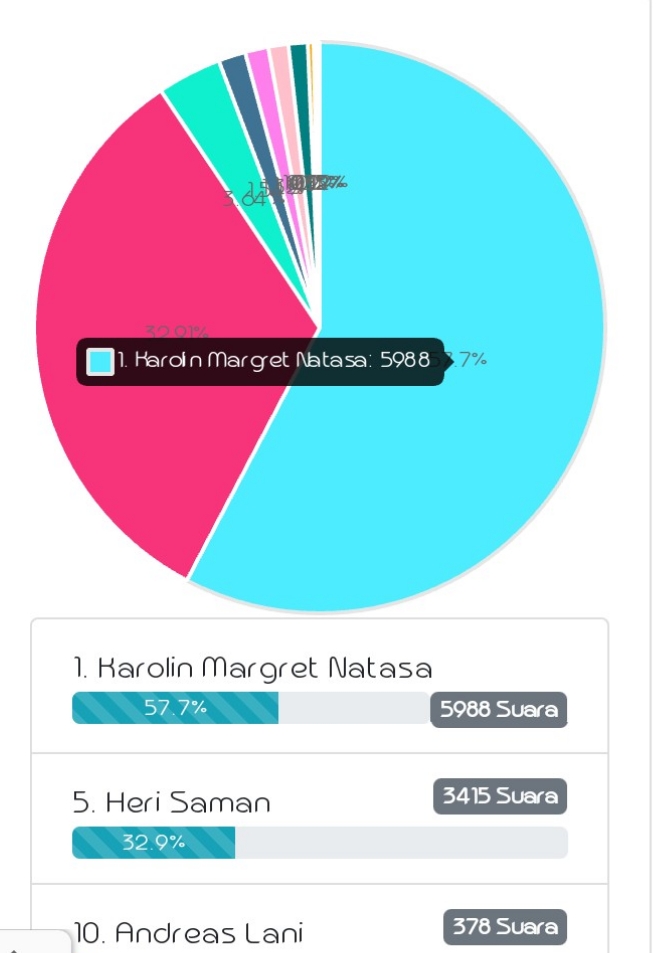 Dari laman situs pollingkita.com Karolin mendapatkan hasil polling sebanyak 5.988 suara dari total sara 10.378 suara yang diikuti oleh 11 kandidat calon Bupati Landak.