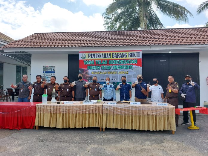 LANDAK – Kejaksaan Negeri Landak melakukan pemusnahan barang bukti yang telah berkekuatan hukum tetap (inkracht) yang dilaksanakan di halaman Kantor Kejaksaan Negeri Landak, Selasa (25/07/2023).