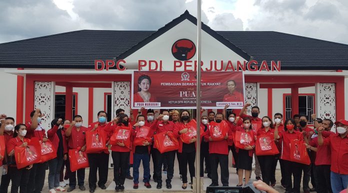Penyerahan bantuan beras tersebut, turut dihadiri Ketua DPC PDI Perjuangan Kabupaten Landak Herculanus Heriadi, Anggota DPR RI Maria Lestari, sejumlah Anggota DPRD Landak dari Partai PDI Perjuangan dan para kader PDIP Kabupaten Landak yang dilakukan di Sekretariat DPC PDI Perjuangan Kabupaten Landak.