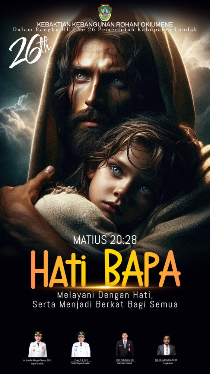“Dalam rangka memperingati Hari Ulang Tahun Pemerintah Daerah Kabupaten Landak yang ke-26, akan diselenggarakan sebuah acara rohani istimewa, yaitu Kebaktian Kebangunan Rohani (KKR), pada Minggu, 12 Oktober 2025, pukul 19.00 wib sampai selesai,” kata G.I Yabel Nisin, S.Th. Kamis, 2 Oktober 2025.