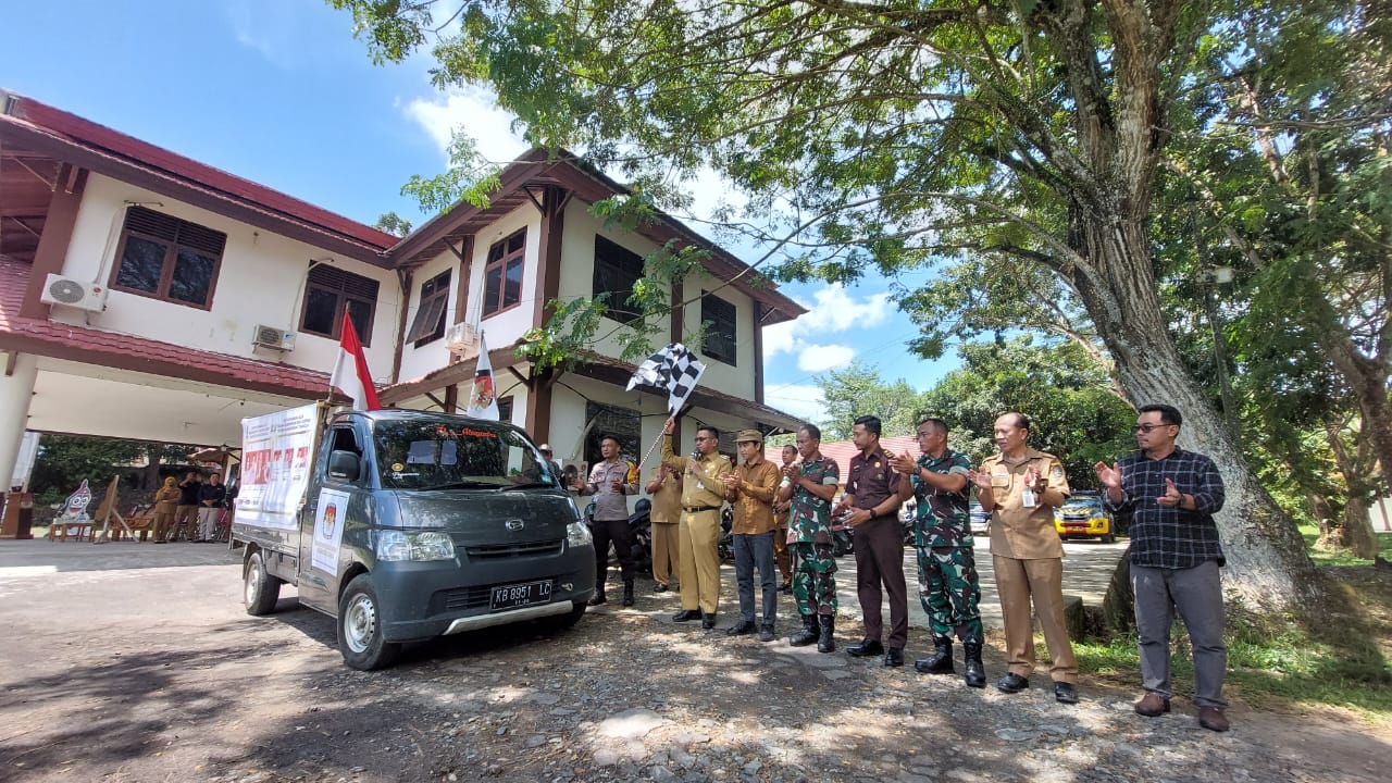 LANDAK – Pj. Bupati Landak Gutmen Nainggolan melepas langsung keberangkatan mobil sosialisasi keliling (Sosling) yang akan digunakan untuk mensosialisasikan tahapan pelaksanaan pemilihan umum yang akan berlangsung pada 27 November 2024 mendatang kepada masyarakat di 13 kecamatan di wilayah Kabupaten Landak.