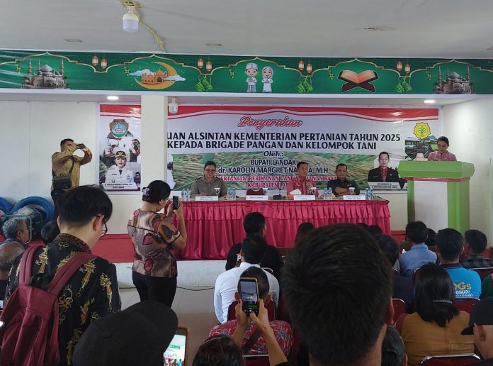 “LTT kita sudah melampaui target nasional. Ini menunjukkan semangat petani kita yang tinggi dan pemanfaatan bantuan yang telah kami salurkan berjalan efektif,” ujar Bupati Landak, dr. Karolin Margret Natasa, saat menyerahkan bantuan alat dan mesin pertanian (alsintan) di Dinas Pertanian, Perikanan dan Ketahanan Pangan Kabupaten Landak, Kamis, (5/6/2025).