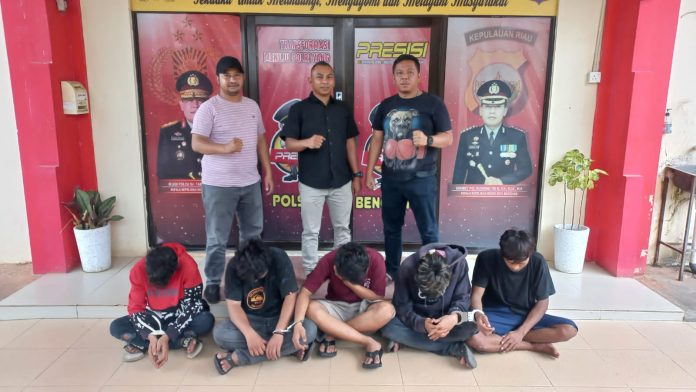 BATAM – Unit Reskrim Polsek Bengkong mengamankan lima orang laki-laki diduga pelaku pengeroyokan yang terjadi dekat Carwash Abadi, depan perumahan Pantai Gading, Kelurahan Tanjungbuntung, Kecamatan Bengkong Kota Batam.