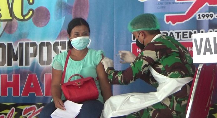 Pelaksanaan vaksinasi masal ini pun diikuti antusias warga masyarakat yang sejak pagi sudah mengantri untuk mendapatkan suntikan Vaksinasi.