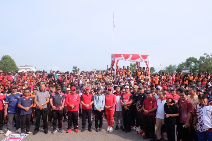LANDAK – Pemerintah Kabupaten Landak mengelar kegiatan jalan santai dalam rangka memeriahkan Hari Ulang Tahun ke – 24 Pemerintah Kabupaten Landak, Tahun 2023 yang dilaksanakan dari halaman Kantor Bupati Landak, Jum’at (13/10/2023).