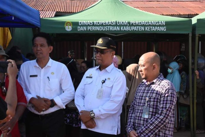 KETAPANG – Staf Ahli Bupati Bidang Ekonomi Keuangan dan Pembangunan Maryadi Asmui didampingi Kepala Dinas PERINDAGKOP menijau langsung operasi pasar dalam rangka pengendalian inflasi daerah dan hari besar keagamaan nasional ramadhan dan Idul Fitri 1445H, di Pasar Ratu Melati Ketapang, Rabu (20/03/2024).