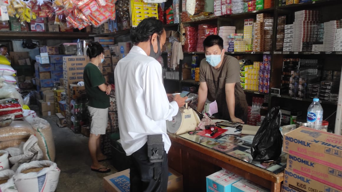 LANDAK- Unit Intelkam Polsek Ngabang melakukan pengecekan terhadap ketersediaan stok sembako jelang hari raya Idul Fitri 1143 H yang dilaksanakan diseputar pasar Ngabang, Sabtu (30/4/2022).