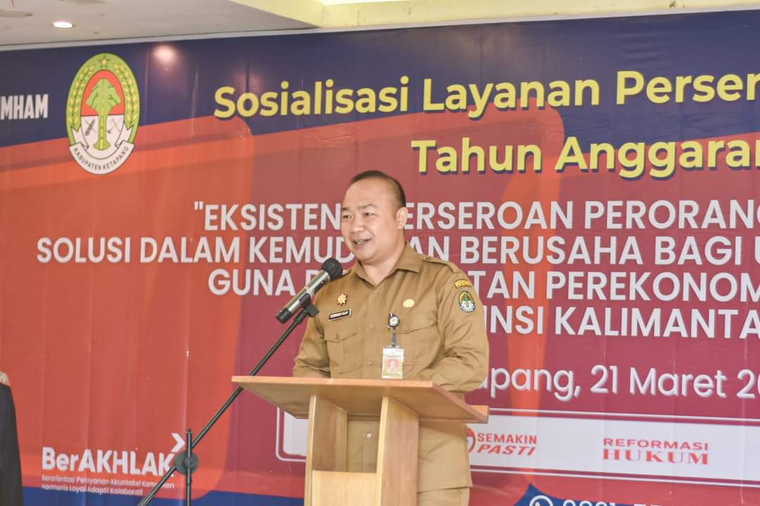 KETAPANG – Sekretaris Daerah Kabupaten Ketapang Alexander Wilyo membuka kegiatan sosialisasi layanan perseroan perorangan dengan tema “Eksistensi Perseroan Perorangan Semakin Pasti Solusi Dalam Kemudahan Berusaha Bagi Usaha Mikro dan Kecil Guna Peningkatan Perekonomian Masyarakat di Provinsi Kalimantan Barat” yang diadakan Kanwil Kemenkumham Kalbar, Selasa (21/03/2023