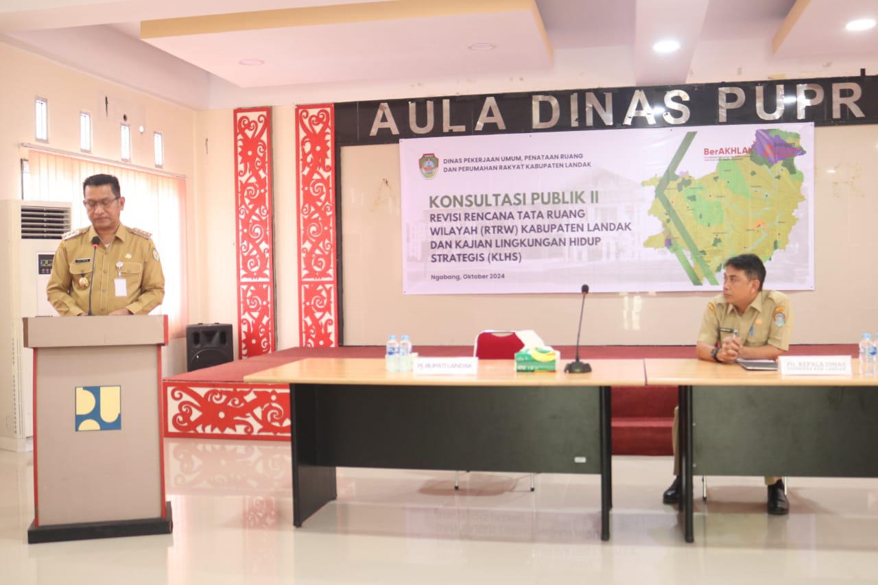 LANDAK – Pj. Bupati Landak Gutmen Nainggolan membuka kegiatan konsultasi publik II revisi Rencana Tata Ruang Wilayah (RTRW) dan Kajian Lingkungan Hidup Strategis (KLHS) di aula Dinas PUPR Pera Kabupaten Landak, Selasa (29/10/2024).