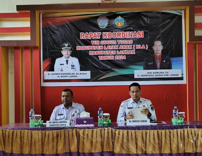 LANDAK – Pj. Sekretaris Daerah Kabupaten Landak Heri Adiwijaya membuka rapat koordinasi tim gugus tugas kabupaten layak anak (KLA) Kabupaten Landak Tahun 2024 yang dilaksanakan di aula Kantor Bappeda Landak, Rabu (04/12/2024).