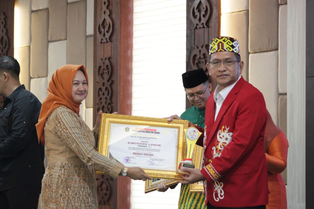 Penghargaan tersebut diterima langsung oleh Pj. Bupati Landak Gutmen Nainggolan dan diserahkan oleh Asisten Pemerintahan dan Kesejahteraan Sekda Provinsi Kalimantan Barat Linda Purnama di Aula Garuda Gedung Pelayanan Terpadu Kantor Gubernur Kalimantan Barat, Senin (28/10/2024).