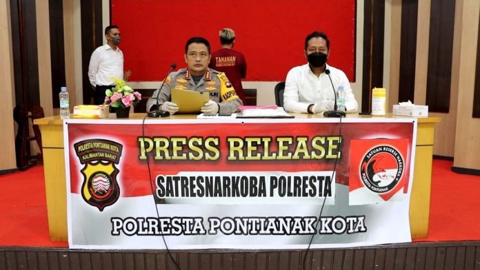 Kapolresta Pontianak, Kombes. Pol. Andi Herindra saat menggelar pres release pengungkapan kasus penyalahgunaan narkoba