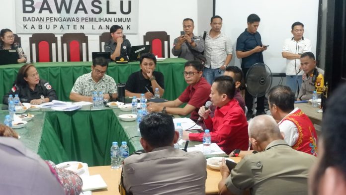 Pertemuan dalam agenda rapat koordinasi yang dilakukan di Kantor Bawaslu Landak ini, turut dihadiri dua komisioner KPU Landak, Kapolres Landak, serta dihadiri Ketua tim pemenangan paslon 01, Herculanus Heriadi beserta tim pemenangan dan tim kuasa hukum.