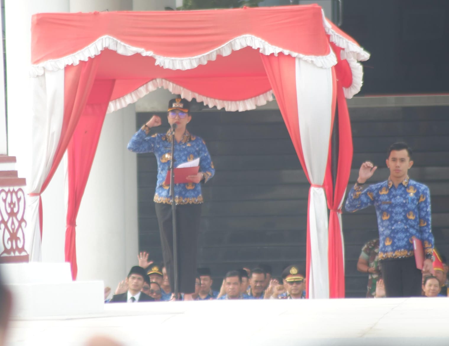 Upacara, dipimpin langsung Bupati Landak Karolin Margret Natasa selaku inspektur upacara, dihadiri jajaran Forkopimda, serta para ASN Pemerintah Kabupaten Landak TNI dan Polri