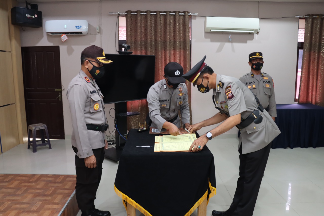 LANDAK- Polres Landak menggelar upacara serah terima jabatan Kabag SDM dan Kapolsek Menjalin yang dilaksanakan di Balai Kemitraan Polisi dan Masyarakat (BKPM) Polres Landak Rabu (16/2/2022).