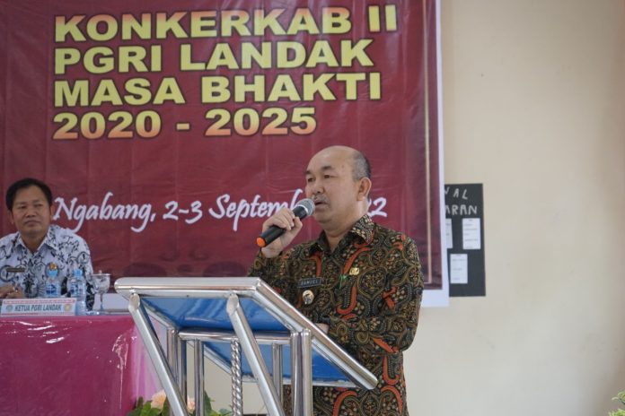 LANDAK – Pj Bupati Landak Samuel membuka kegiatan Konferensi Kerja Kabupaten (KONKERKAB) II PGRI Landak 2022 dengan tema Bangkit Guruku, Maju Negeriku, Indonesia Tangguh, Indonesia Tumbuh, di SMA Negeri 1 Ngabang, Jum’at (02/09/2022).