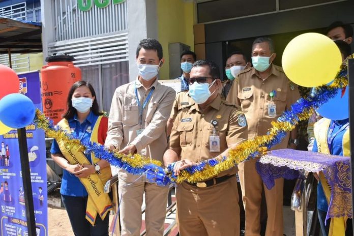 KETAPANG- Pj Sekda Ketapang Suherman menghadiri acara serah terima bantuan renovasi bangunan Puskesmas Sukabangun, program CSR PT. Indomarco Prismatama (Indomaret), Senin (5/7/2021).