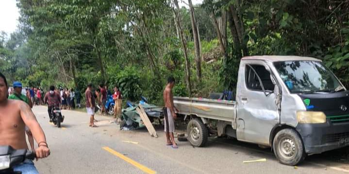 SENGAH TEMILA- Peristiwa kecelakaan lalu lintas melibatkan dua unit kendaraan roda empat dan enam terjadi di Jalan Raya Dusun Runut, Desa Tonang, Kecamatan Sengah Temila, Kabupaten Landak Kamis (25/08/2022).