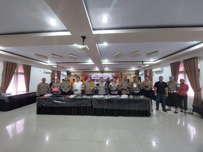“Para tersangka ini kita kumpulkan dari empat kasus besar diantaranya kasus konvensional yang secara umum dari 2022 ke 2023 trennya mengalami penurunan 19.67 persen, dalam penanganan kasus 2023 jadi laporannya 147 kasus dan penyelesainnya 120 kasus bearti 82 persen penanganan kita,” jelas Kapolres.