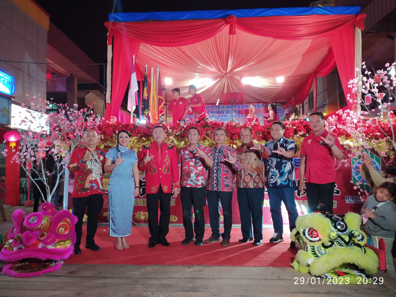 LANDAK– Bupati Landak periode 2017-2022 Karolin Margret Natasa menghadiri puncak perayaan Imlek Ngabang yang berlangsung sejak tanggal 27 hingga 29 januari 2023 dalam rangka memeriahkan Tahun Baru Imlek 2574 tahun 2023 di Kecamatan Ngabang, Kabupaten Landak, minggu (29/01/23) malam.