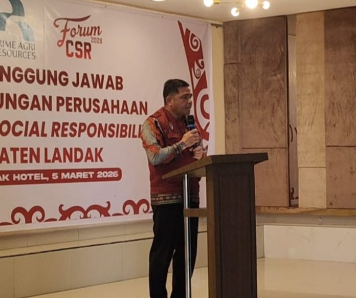 LANDAK – Wakil Bupati Landak, Erani, membuka rapat koordinasi Forum Tanggung Jawab Sosial dan Lingkungan Perusahaan (TSLP) atau Corporate Social Responsibility (CSR) Kabupaten Landak yang melibatkan unsur pemerintah daerah, aparat penegak hukum, serta pelaku usaha, yang difasilitasi PT. Prime Agri Resources di aula Hotel Grand Landak, Kamis (05/03/2026).