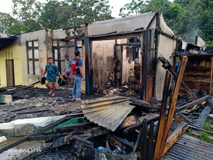 SANGGAU- Satu unit rumah warga yang berada di Dusun Bengkawan, Desa Jangkang Benua, Kecamatan Jangkang, Kabupaten Sangau ludes terbakar pada Selasa (15/3/2022).