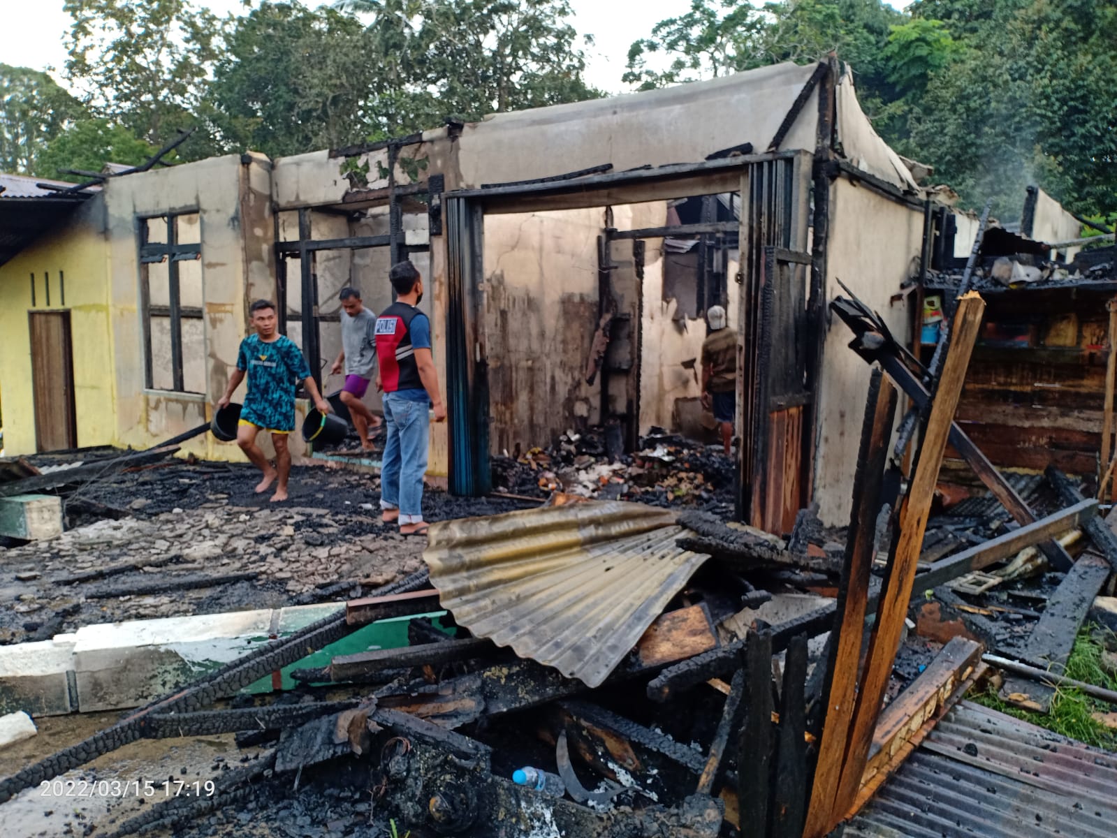 “Api berhasil dipadamkan oleh warga setempat sekitar pukul 17:30 Wib dengan menggunakan peralatan seadanya seperti ember dan alat penyemprot gulma,” papar Ade.