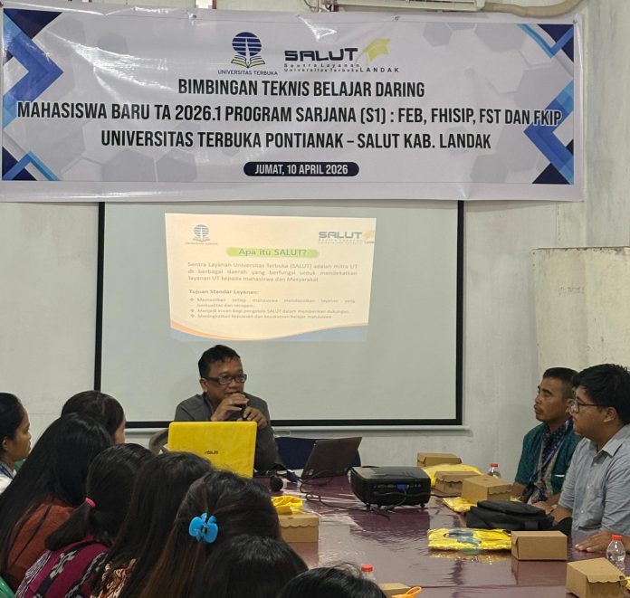 LANDAK – Sentra Layanan Universitas Terbuka (SALUT) Landak kembali menunjukkan komitmennya dalam mendukung keberhasilan studi mahasiswa dengan menggelar Bimbingan Teknis Belajar Daring bagi mahasiswa baru Tahun Akademik 2026. 1, Jumat (10/4/2026).
